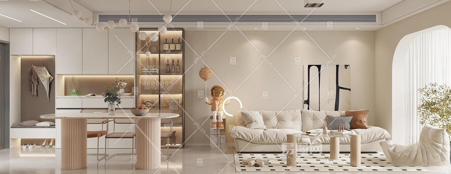 现代奶油客餐厅3D模型下载
