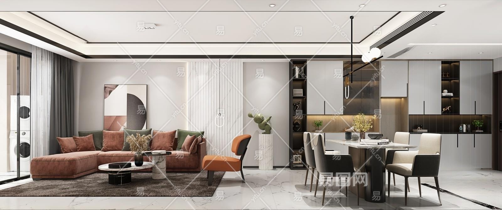 现代极简客餐厅3D模型下载
