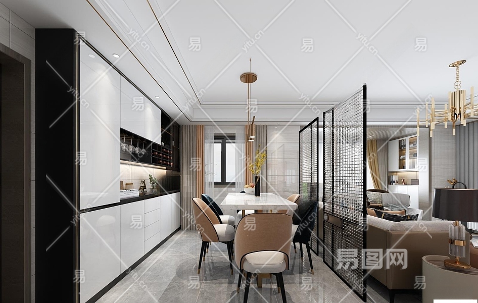 现代客餐厅3D模型下载