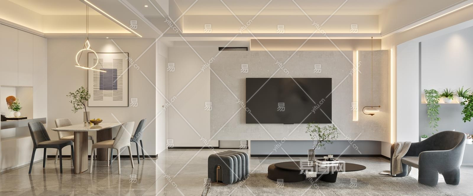 现代客餐厅3D模型下载