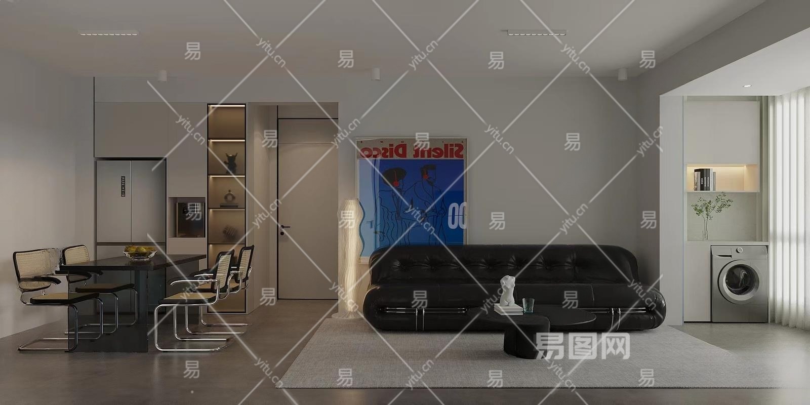 现代极简客餐厅3D模型下载