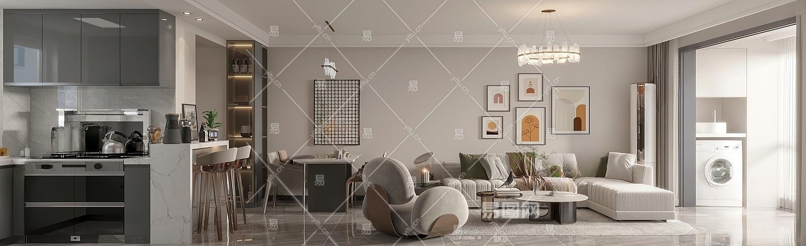 现代客餐厅3D模型下载