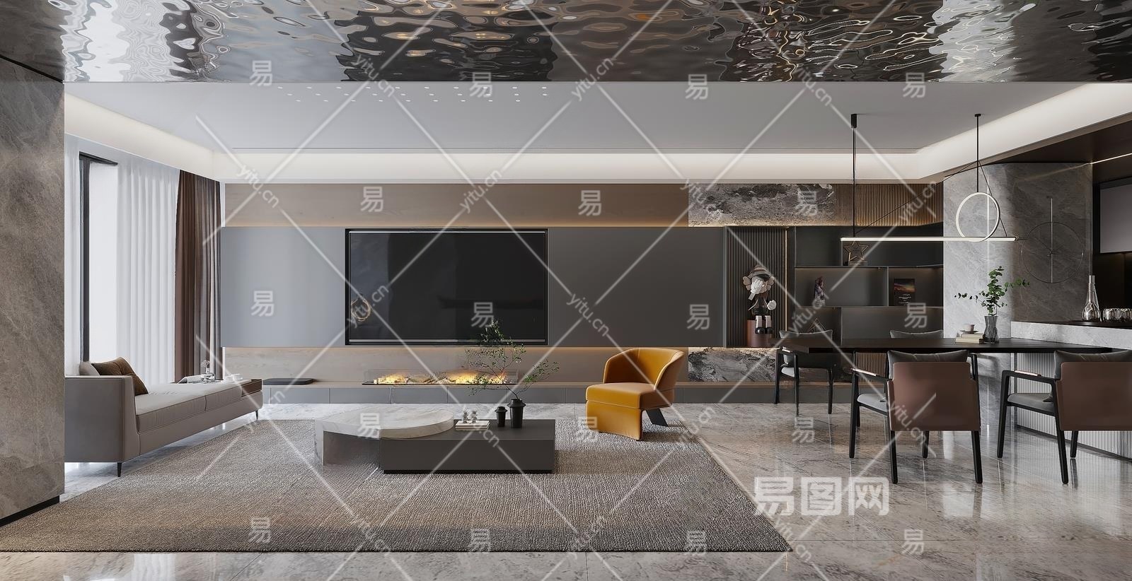 现代客餐厅3D模型下载