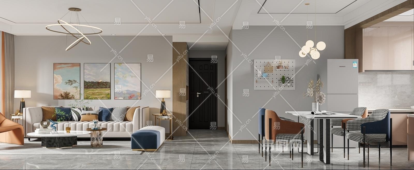 现代客餐厅3D模型下载