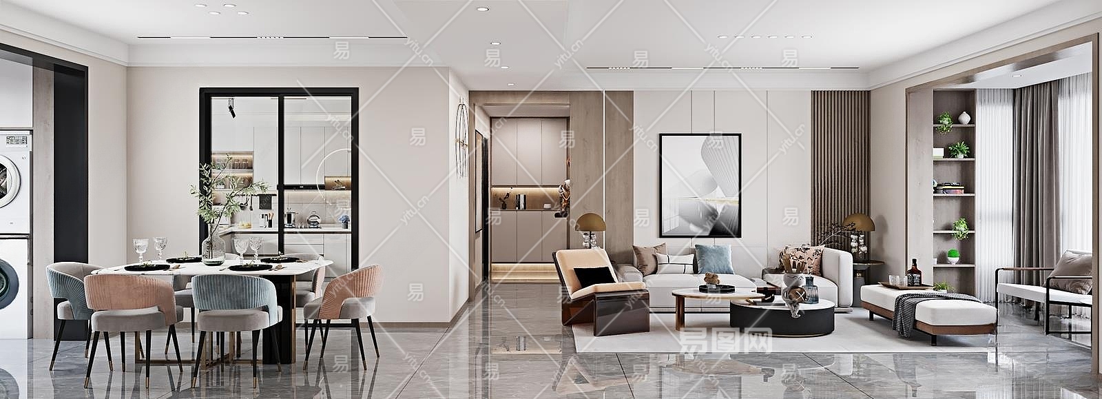现代客餐厅3D模型下载