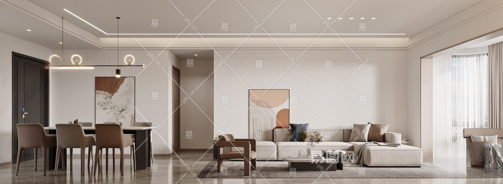 现代客餐厅3D模型下载