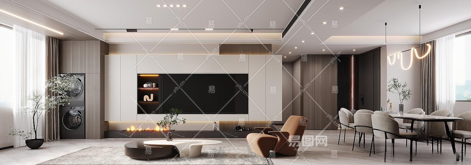 现代客餐厅3D模型下载
