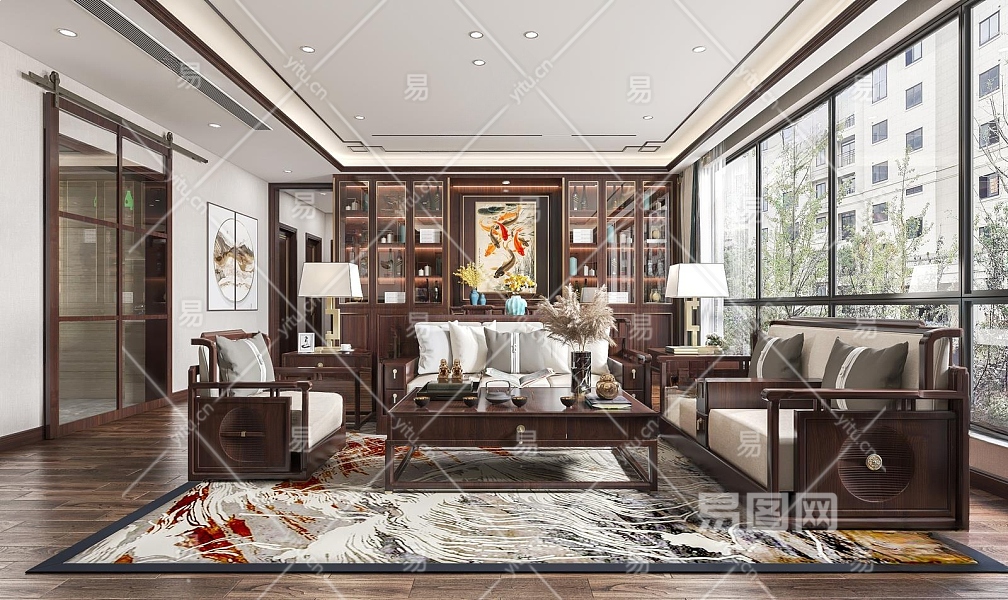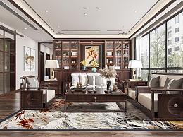 新中式客餐厅3D模型下载