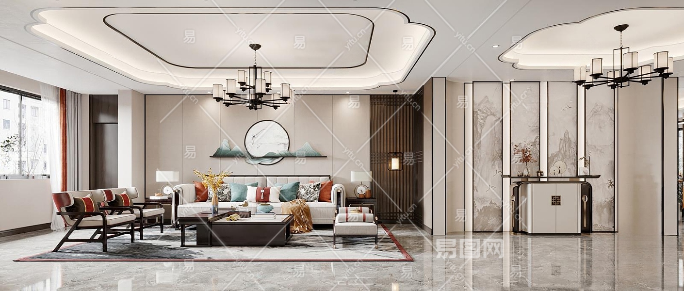 新中式客餐厅3D模型下载