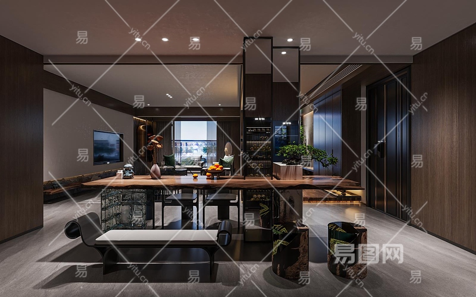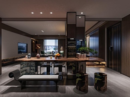 新中式客餐厅3D模型下载