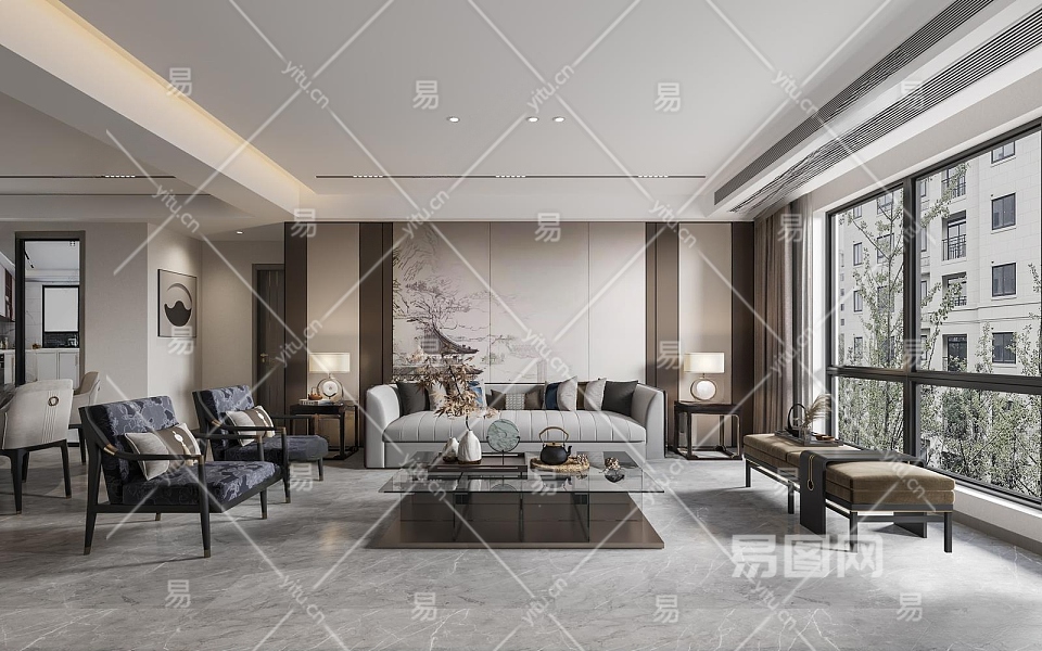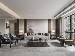 新中式客餐厅3D模型下载