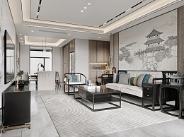 新中式客餐厅3D模型下载