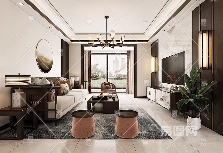 新中式客餐厅3D模型下载