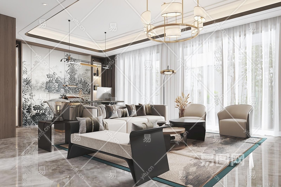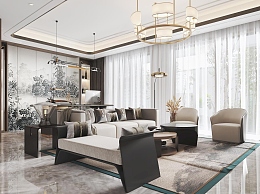 新中式客餐厅3D模型下载