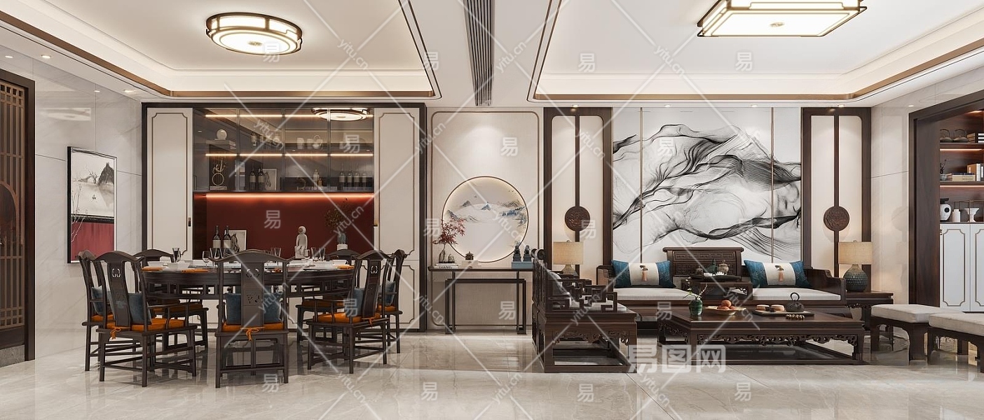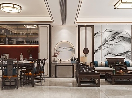 新中式客餐厅3D模型下载