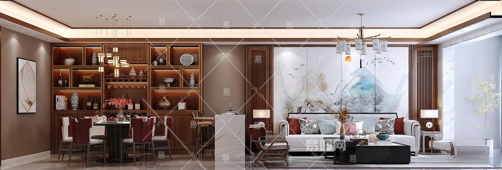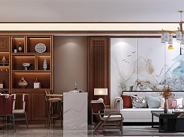 新中式客餐厅3D模型下载