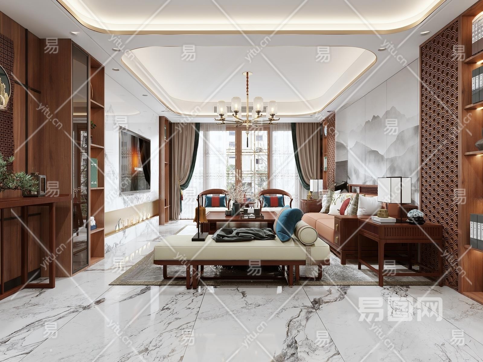 新中式客餐厅3D模型下载