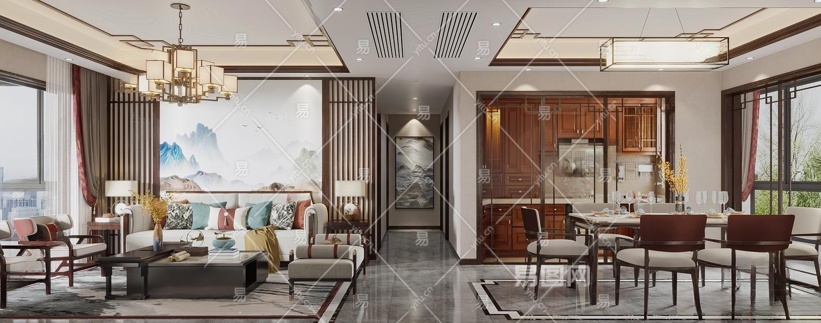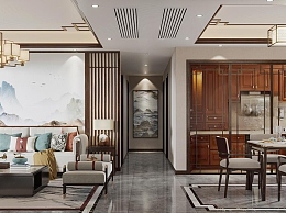 新中式客餐厅3D模型下载