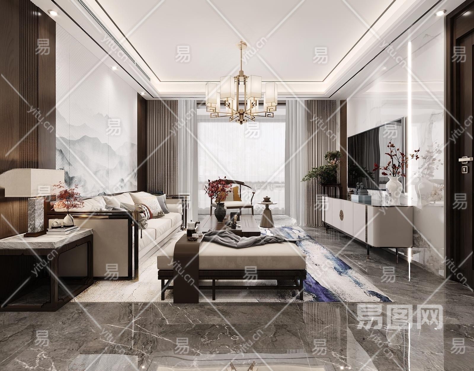 新中式客餐厅3D模型下载