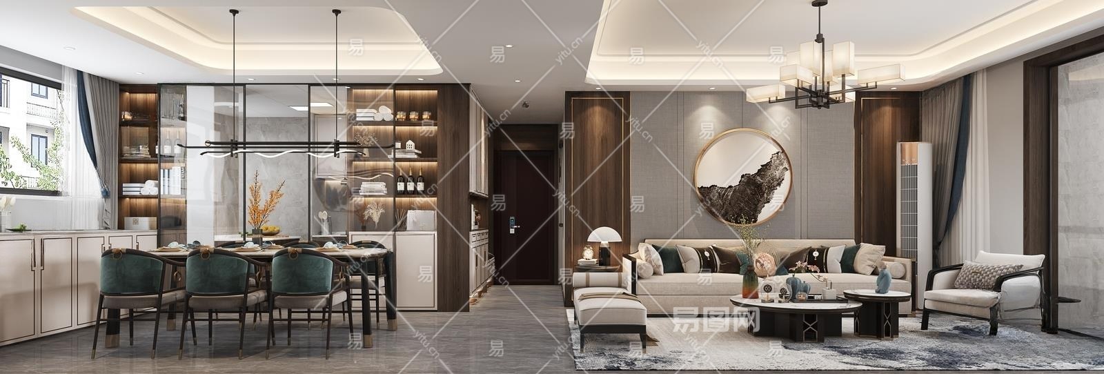新中式客餐厅3D模型下载