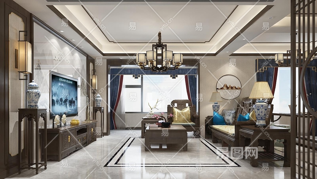 材质VR材质 贴图有贴图 灯光VR灯光 风格中式