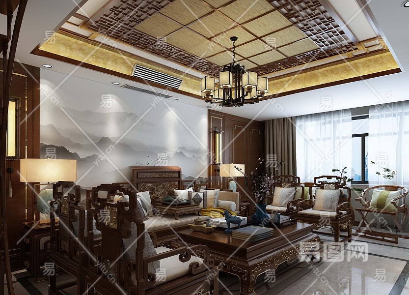 中式客餐厅3D模型下载
