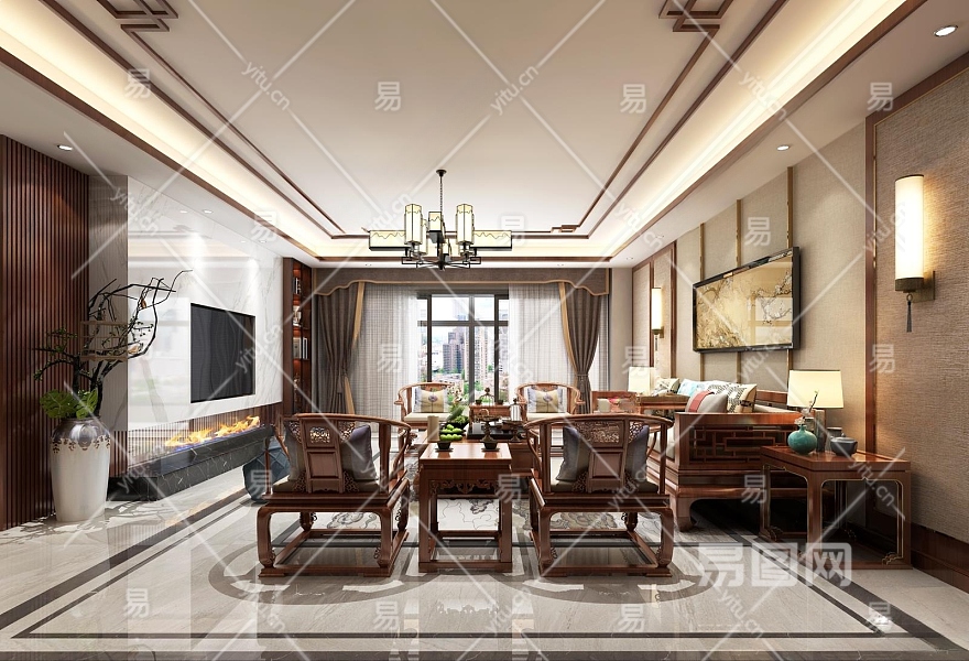 中式客餐厅3D模型下载
