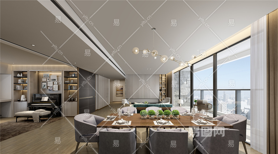 当前的位置:首页 > 3D模型 > 家装空间 > 客餐厅 > 现代轻奢客餐厅 沙发 茶几 餐桌椅 吊灯书柜 钢琴 绿植 盆栽
