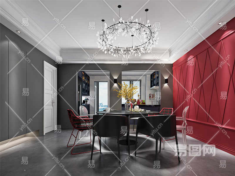 现代餐厅 餐厅 餐桌 餐椅 餐边柜