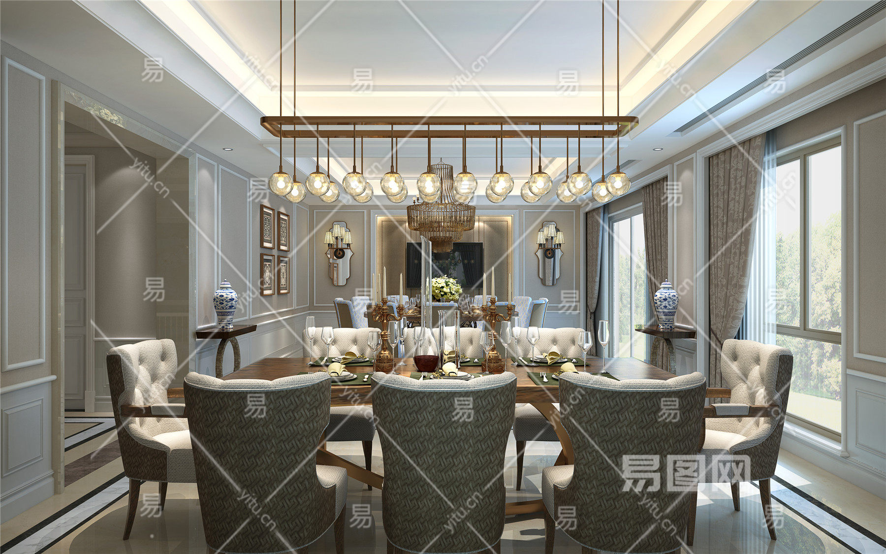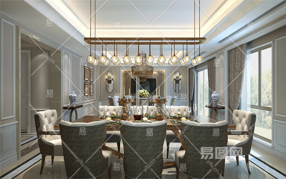 当前的位置:首页 > 3D模型 > 家装空间 > 客餐厅 > 简欧餐厅 吊灯 壁灯 餐桌椅