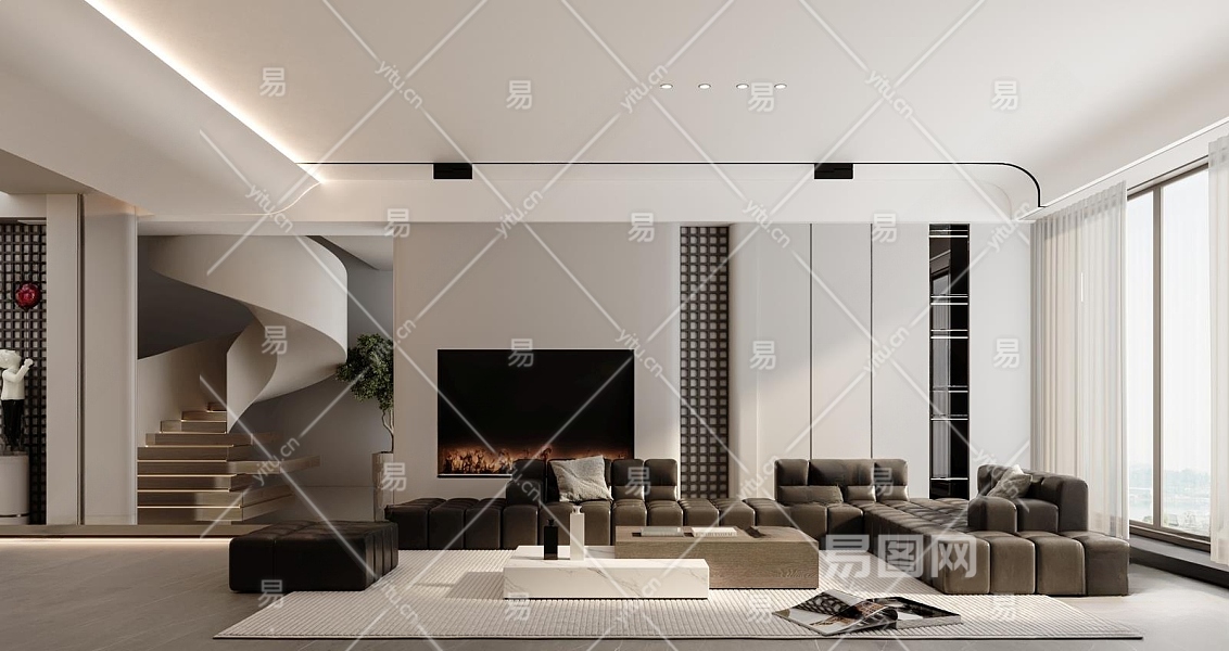 现代客厅3D模型下载