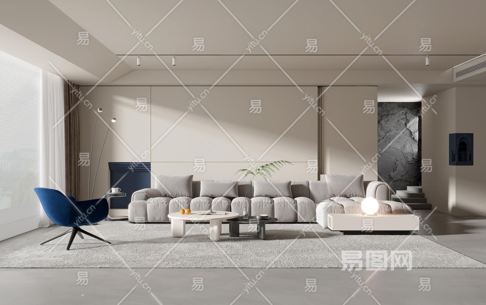 现代别墅客厅3D模型下载