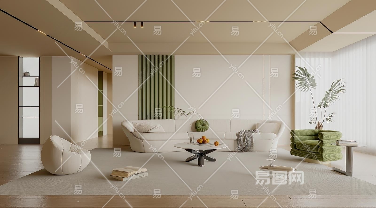 现代客厅3D模型下载