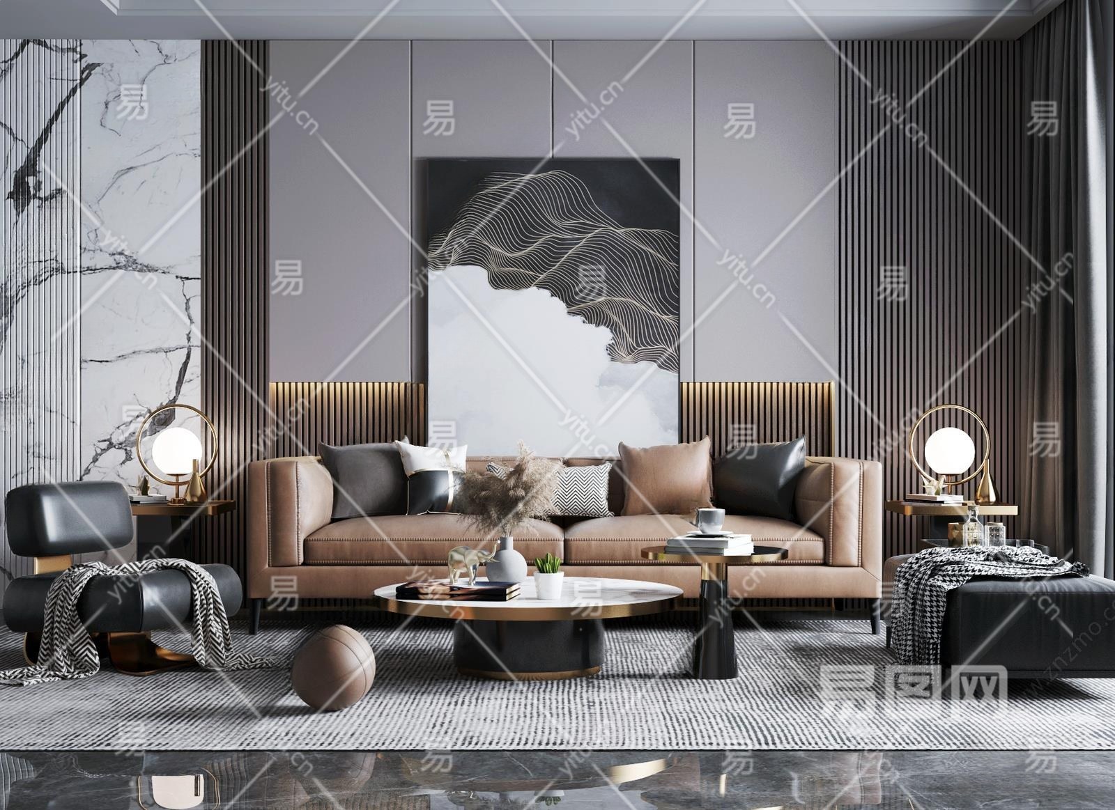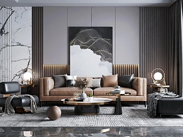 现代客厅3D模型下载