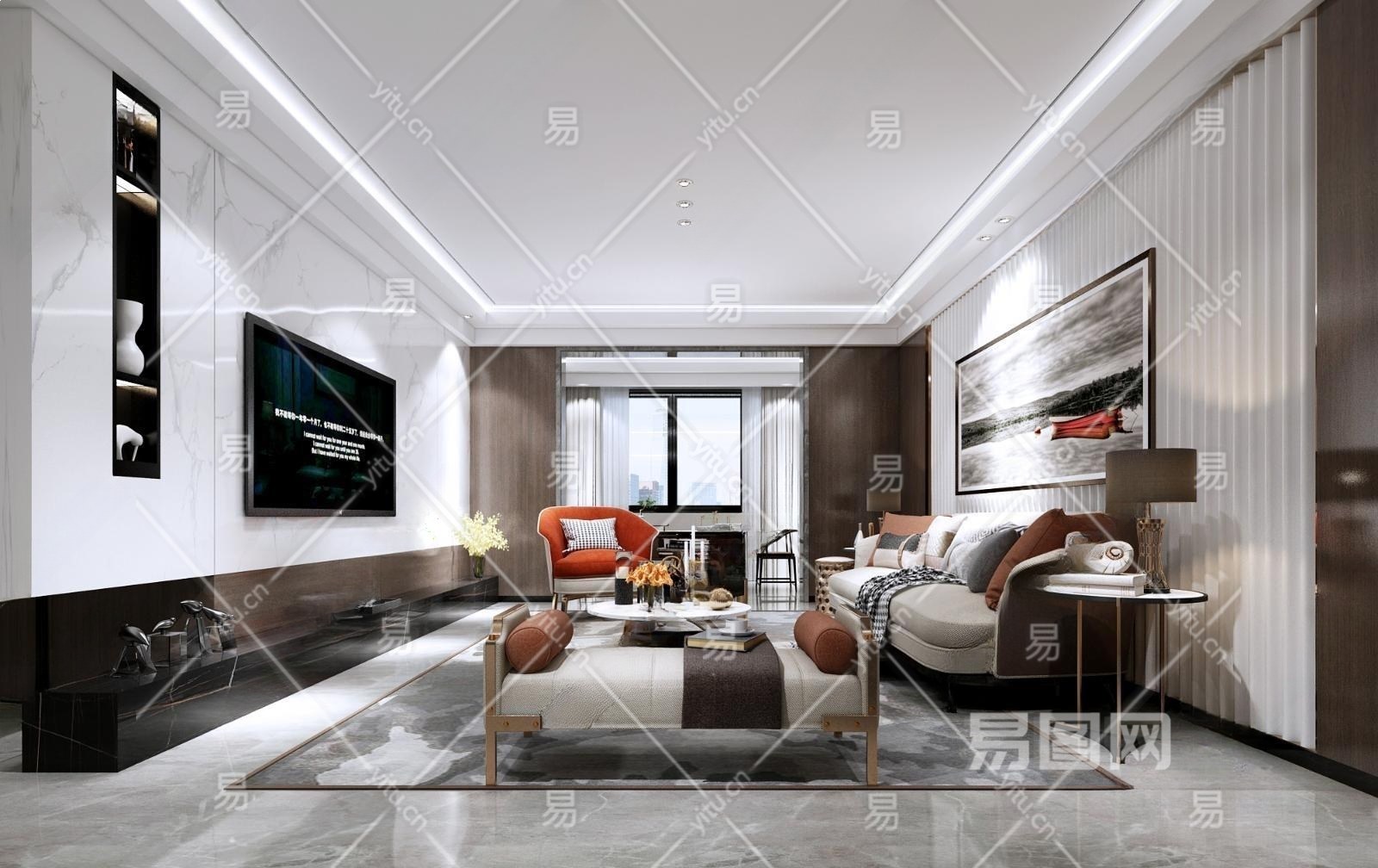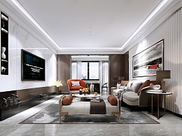 现代客厅3D模型下载