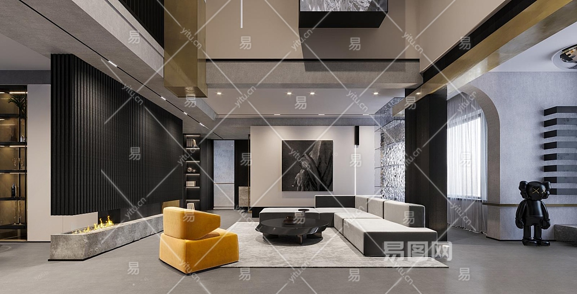 现代别墅客厅3D模型下载