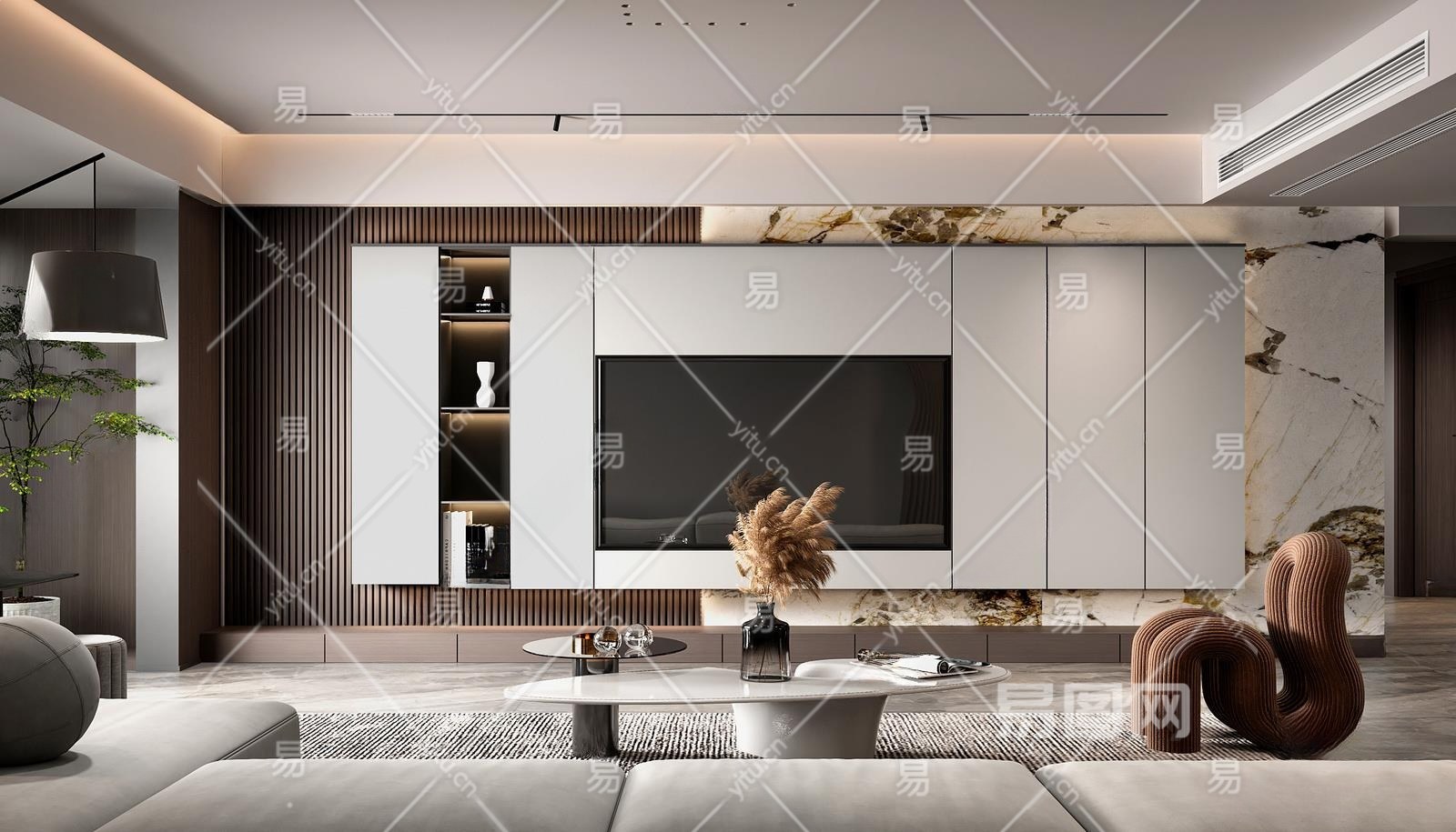 现代家居客厅3D模型下载