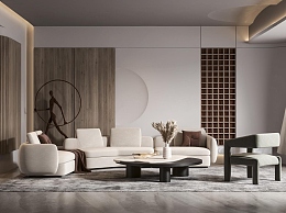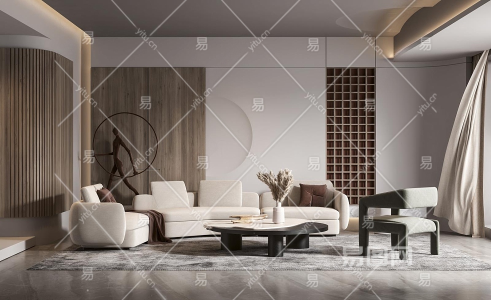 现代客厅3D模型下载