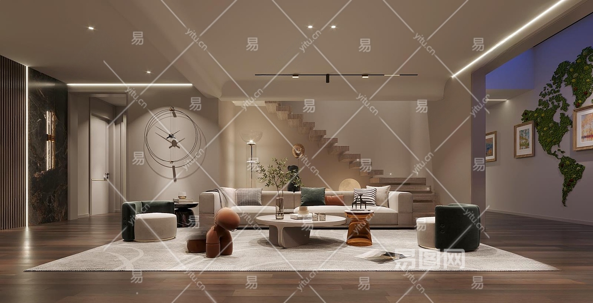 现代家居客厅3D模型下载