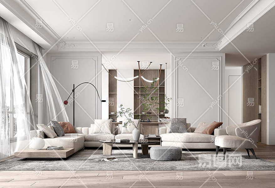 现代客厅3D模型下载