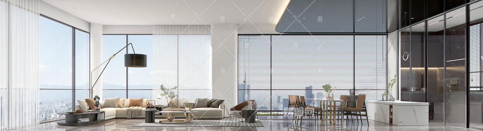 现代大平层客厅3D模型下载