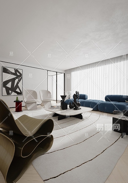 现代家居客厅3D模型下载