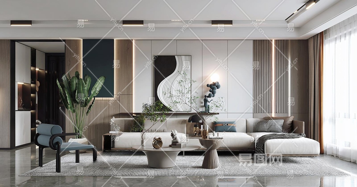 现代家居客厅3D模型下载