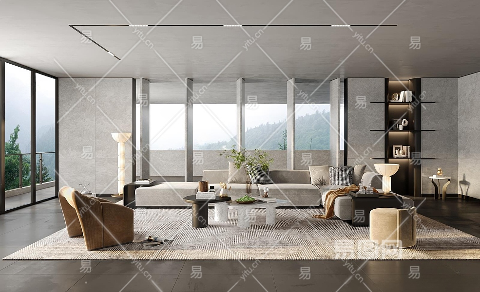 现代家居客厅3D模型下载