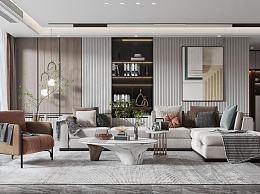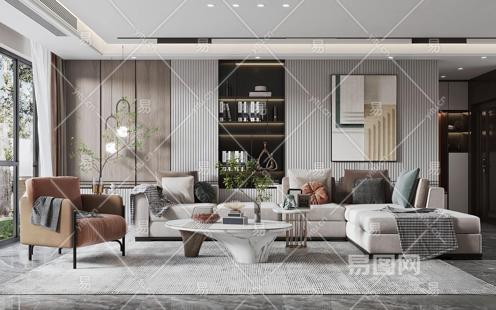 现代客厅3D模型下载