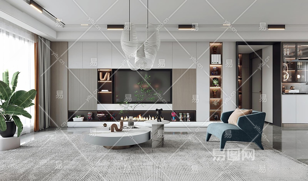 现代家居客厅3D模型下载