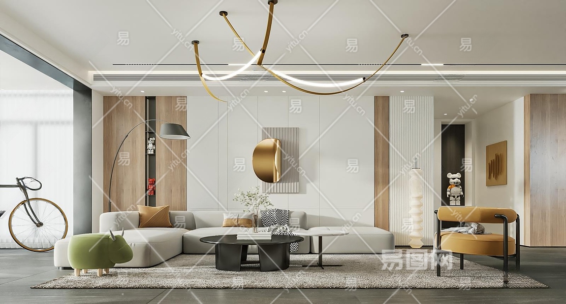 现代客厅3D模型下载