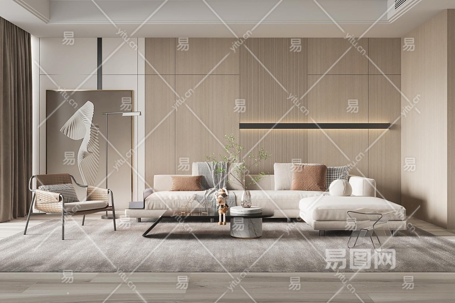 现代家居客厅3D模型下载