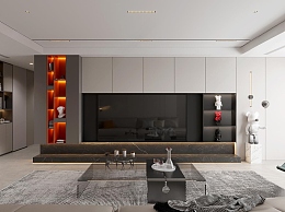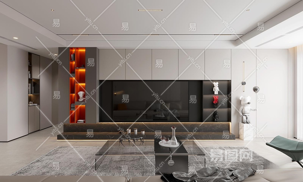 现代极简家居客厅3D模型下载