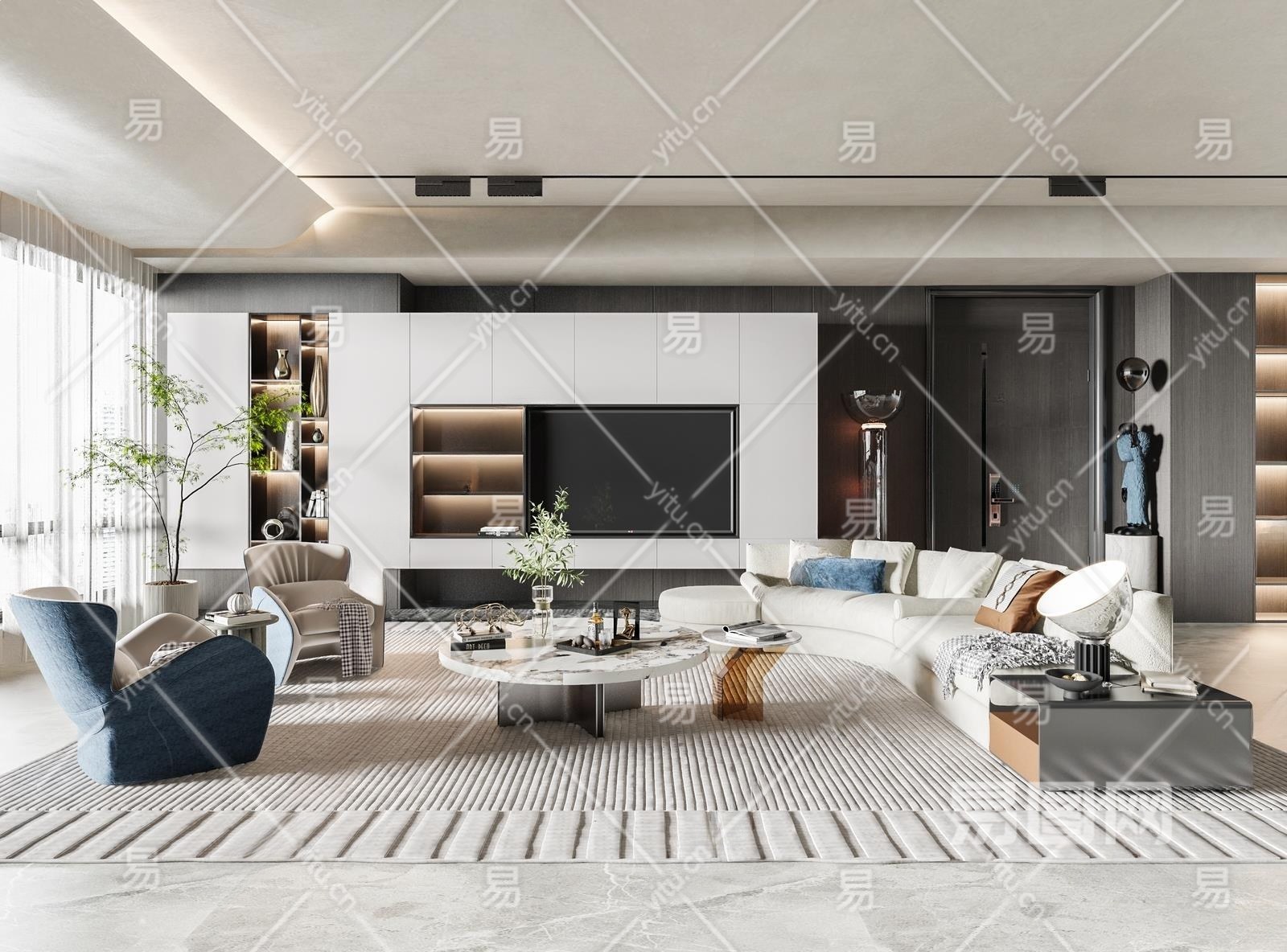 现代家居客厅3D模型下载